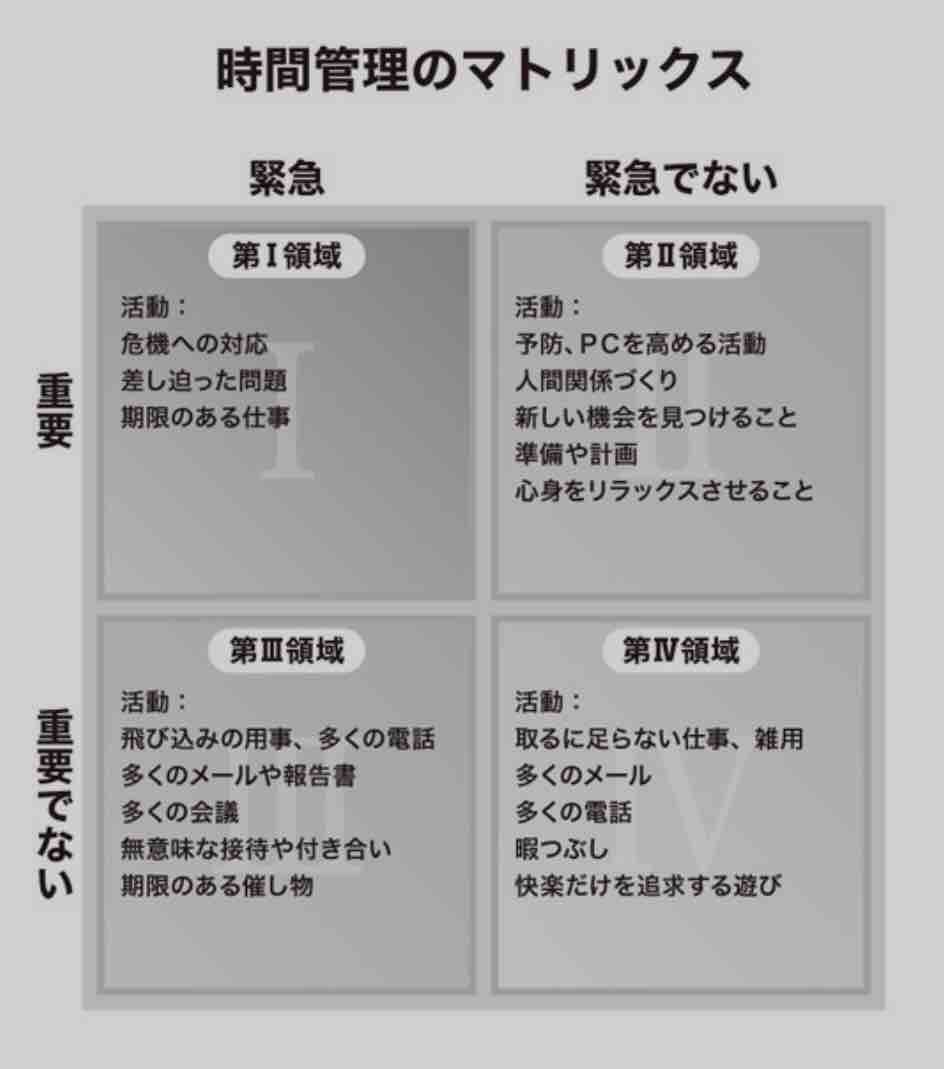 緊急度X重要度 時間管理のマトリックス