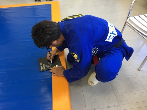 それから大注目の脇差しパス。バルボーザや大好きなマルセロ・ガッシアの得意技であり、私のパスも基本的に脇差しだ。そして今日教えてもらったのはガッシアがやってるやつ。試合のVで何度も何度も観たやり方だ。ガッシアはいとも簡単にスイーッと足を越えていく。当然、相手もトップ選手なのに。これが不思議でならなかった。柔軟性の問題かなーと思い込んでいたが、ポイントをバッチリ教えてもらった。ちなみに岩崎選手はスパーリングでガッシア本人をパスしている。