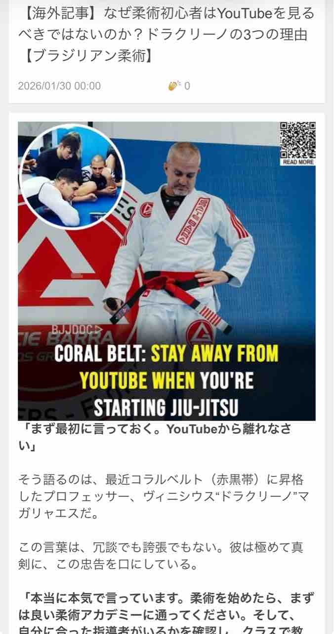 私は日本黎明期に柔術を始め、当時指導者も情報も少なく、様々な先生から指導を受けることも多かった。一見近道のようだが実感としては大回りした。